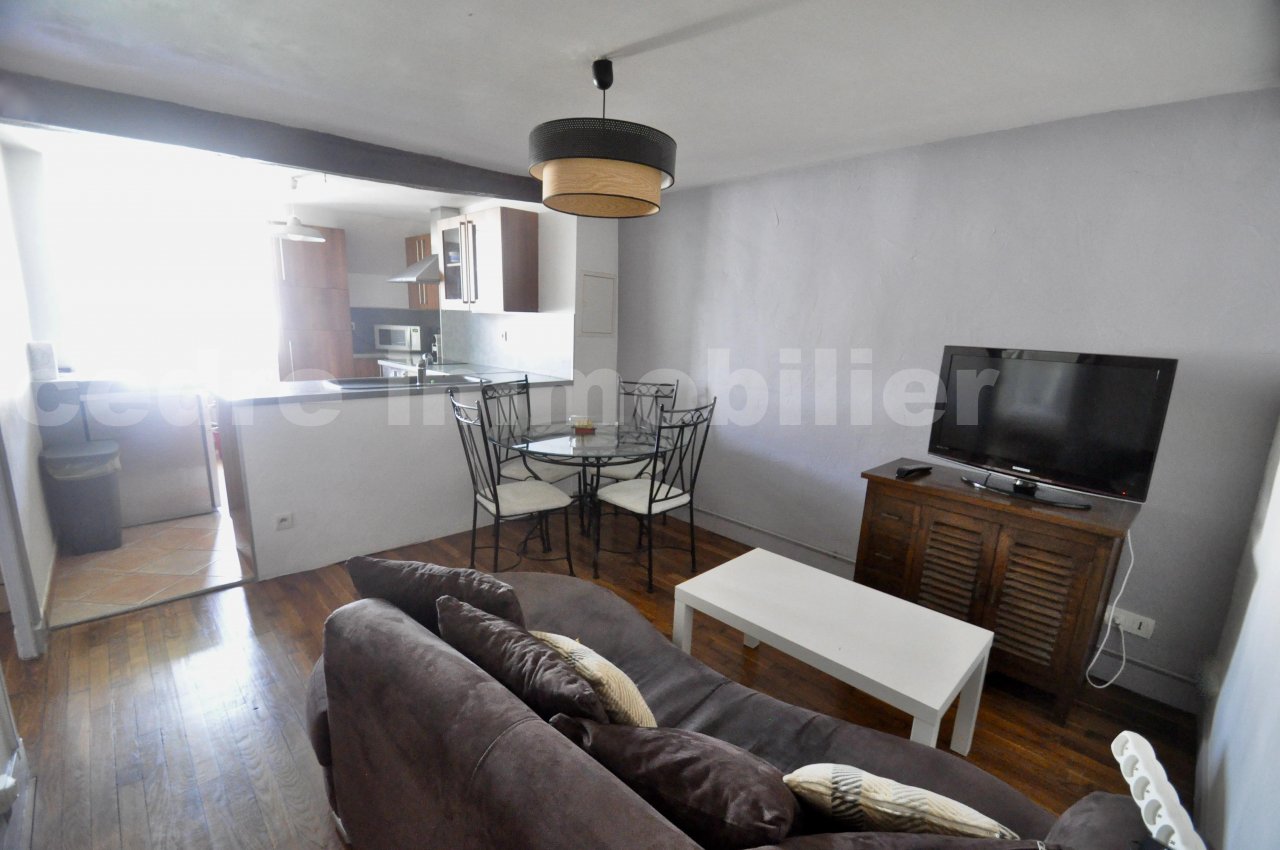 Cet appartement entièrement meublé offre un espace de vie fonctionnel et confortable pour une personne ou un couple.