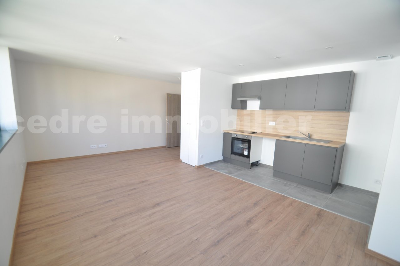 T2 de 52 m2 comprenant une pièce de vie avec cuisine ouverte aménagée et équipée, une chambre avec dressing et une salle d'eau.